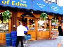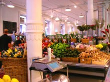 9.食料品店はパラダイス 料理上手でグルメな我が友人。海外旅行の旅に土地の美味しいものを買ってきてくれるのだが、今回は一緒に贅沢グ ルメストア巡りと相成った。まずはソーホーのDean&Deluca。世界中の高級食材が山と集められた有名店。オリジナルの缶入りスパイスは私もよくお土産に買う。新鮮な西洋野菜やきのこ類、チーズ、パストラミやハム・ソーセージを見るにつけ、「トランクに詰めて沖縄に持って帰りたいなぁ」と溜め息。持ちかえりが叶わないならせめてホテルルームでの朝ご飯用にと、美味しい黒パンやチーズ、サラミ、みずみずしいチェリーやヨーグルト等を買う。それから、マンハッタンに3ヶ所あるGARDEN OF EDEN。こちらもオリジナルのサンドイッチやパーティー用のプラ ッターが人気で、面白い食材で溢れている。オリーブやピクルスなど、樽からたっぷりすくってこれも持ちかえりたいなぁ。珍しいハーブのまぶされたクラッカーやスパイスなどの乾き物を買って我慢する。さらに、今回ぜひ行きたかったのがChelsea Market。チェルシーの古い殺風景なビルの扉を開け ると、魚屋、肉屋、パン屋、八百屋にパティスリーやチョコレートショップ、酒屋に花屋にキッチン用品店と専門店がぎっしり軒を連ねている。換気のせいか魚の匂いが充満した場内は、まさしく公設市場そのもの。有名なブラウニー屋でオリジナルのTシャツを購入。面白いのは、場内のあちこちにアート作品が飾られ、彫刻家の作品らしき石のベンチなどが和ませてくれる。毎月色々なライブもあると聞く。買ったものを、あちこちにあるテーブルで自由に食べることができるので、1日遊べそうな空間である。 太るだろうけれど。さて、現地友人氏のホームパーティで知り合った女性から、とびきりのマーケットを教えてもらった。ユニオンスクエアに今年オープンしたばかりというTrader Joe's。かなり広い店内に「面白いくらい安いですョ」と彼女が笑いながら言ってたとおり、信じられない値札が付いた商品がずらりと積み重なっていた。私と友人は半狂乱に近い状態に陥った。だって・・特大5個入りのベー グルが$1.19、日本で¥500はしそうなジャムが$1.00。パスタも穀類も日本の3分の1程度の値段である。ハムもチーズも野菜も安く、オリジナルのチョコレートも激安。とにかく何もかもが信じられないくらい安いのである!しかも素材は全て良いものばかり。オリーブの瓶詰も安いので物色していたら、ガーリックとハーブで漬けられた美味しそうなグリーンオリーブのパック入りを発見。軽くて最高だねと2人して買占めた。レジで値段を聞いて驚いたことに、ひとつたったの70セントだと言う。感じの良いレジの女性曰く、人気商品ですぐに売り切れるという。ヒヨコ豆と和えると美味しいですョと教えてくれた。1時間くらい経過しただろうか。2人それぞれ両手にずっしりと2重にした大袋いっぱいの戦利品となったが、支払ったのは1人$60程度である。この店を教えてくれたCさん、ありがとう。Trader