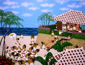 楽園の砂浜で キャンバスにアクリル 41cm×32cmSOLD アートプリント有り 作品番号R1 ジクレー版画有り |