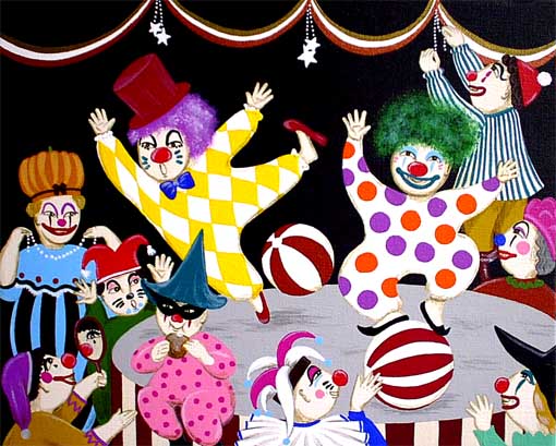 of silk satin they were wearing. One day,I found a "clown"doll within them.His face was very funny,but his eyes looked contain lonliness. Suddenly,I felt that I couldn't stay in the room anymore and went back home. At the door,the lady gave me a box of candies. I said"thank you" to the lady and forgot the eyes of "clown"doll because of the hapiness holding the beautiful candy box. |