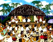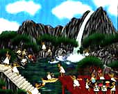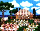 | 楽園そば屋 The noodle shop 27.2cm×22cm SOLD | 楽園の滝 The Falls 27.2cm×22cm SOLD | 楽園の村芝居 The Festival 27.2cm×22cm SOLD |