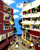 | 楽園の港 Welcome to the Paradise 45.5cm×38.3cm SOLD | 楽園の街角 Paradise Deli 27.2cm×22cm SOLD | 楽園の浜辺 On the beach 45.5cm×38.3cm SOLD |