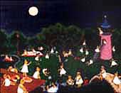 | 夜の誕生会 The birthday party in the night 41cm×32cm SOLD | ビーチパーティー The beach party 41cm×32cm SOLD | キャンプ場ににわか雨 A shower on the camping site 41cm×32cm SOLD |
