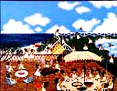 | 海辺のフリーマーケット Free Market 41cm×32cm SOLD | 夜の公園で Playing at night 41cm×32cm SOLD | ビーチサイドテラス The bearch side terrace 41cm×32cm SOLD |