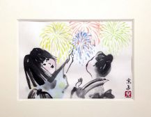 | 浴衣と花火/横型(和紙に墨)SOLD | 浴衣と鳳凰木(和紙に墨)SOLDSOLD | |
